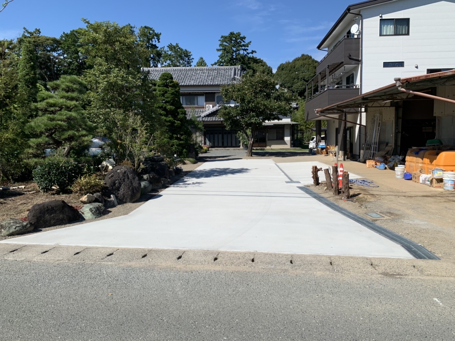 トラックなどの作業車が入りやすいよう、大きめに施工しております。